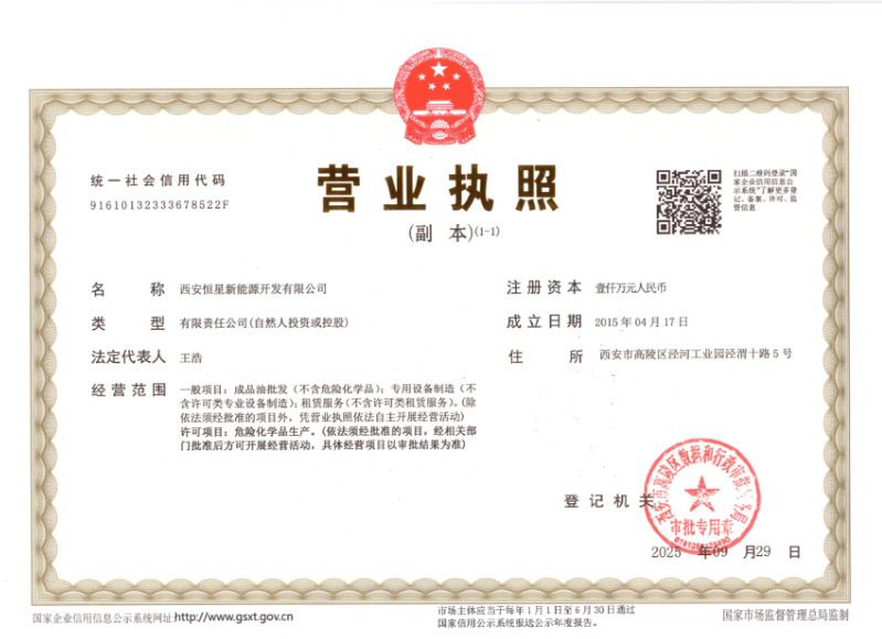 西安恒星新能源開發(fā)有限公司是經(jīng)西安市工商行政管理局于2015年5月批準成立的以清潔能源產(chǎn)品研發(fā)、生產(chǎn)、銷售為主業(yè)的經(jīng)濟實體。
